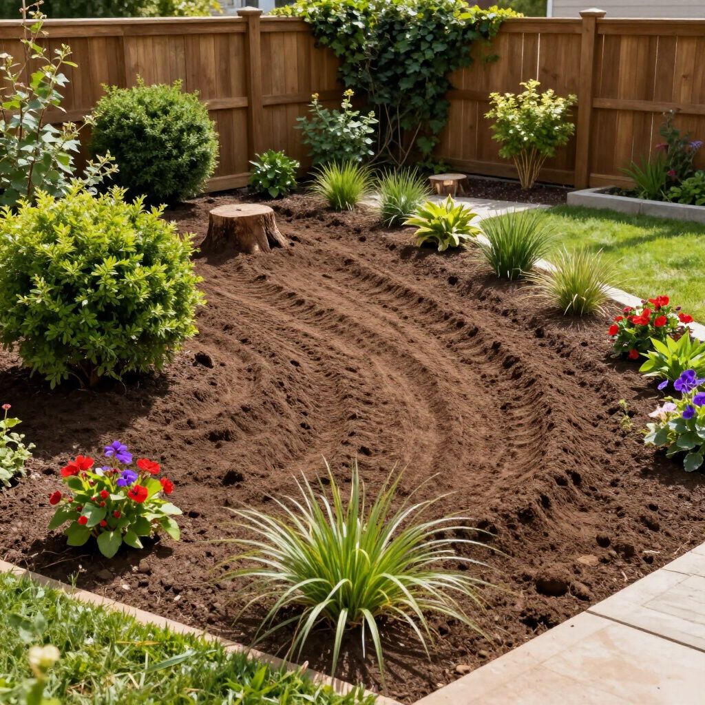 The ground is leveled and filled with soil to blend the area seamlessly into your landscape, ready for planting or other uses.